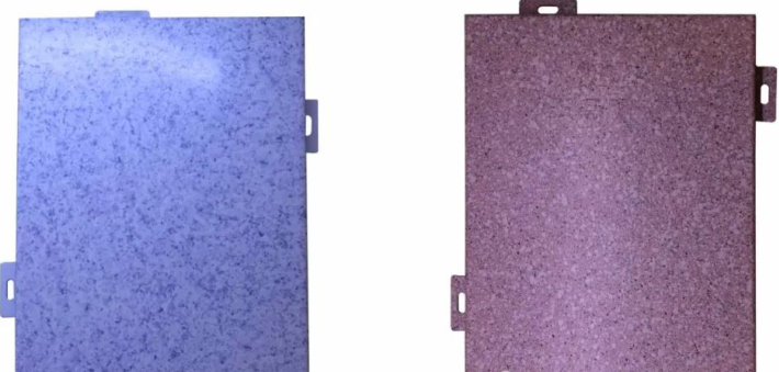 现实使用中,氟碳喷涂仿石材铝单板和真石漆仿石材铝单板应用较多。氟碳喷涂仿石材铝单板采用kynar-500、hylur500为基料的pvdf氟碳仿石色漆进行喷涂, 再进行氟碳甩点,营造出石材的装饰效果,可用15年不褪色,良好的抗腐蚀性、颜色和光泽保持力,使其寿命长,持久如新。真石漆仿石材铝单板表面喷涂真石漆涂料,有光面和麻面两种效果,麻面真石漆仿石材铝单板上附有石材颗粒,仿石效果极为逼真。
