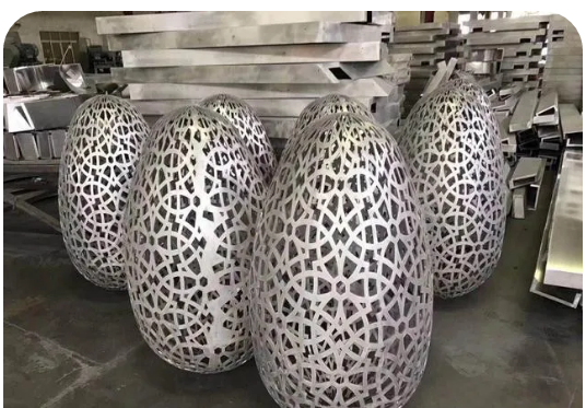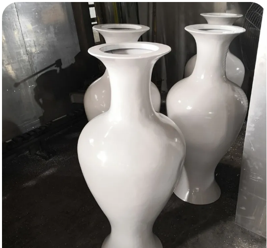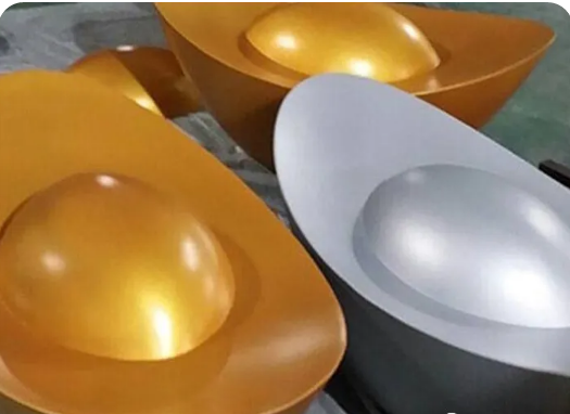 从一个花瓶的制作过程中就可大致了解到山西铝单板造型产品的制作流程,先压延出分解的产品形状,再点焊固定,再进行打磨使其光滑,最后再如下图一样喷涂上喜欢的颜色,一件完整的艺术作品就诞生了。