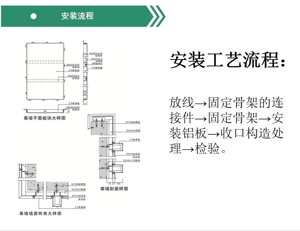 山西铝单板是采用优质铝合金板材为基材,再经过数控折弯等技术成型,表面喷涂装饰性涂料的一种新型幕墙材料。山西铝单板基材采用1100H24、1060H24、3003H24、5005H24等幕墙专用单层铝合金板。 山西铝单板其构造主要由面板、加强筋和角码等部件组成。